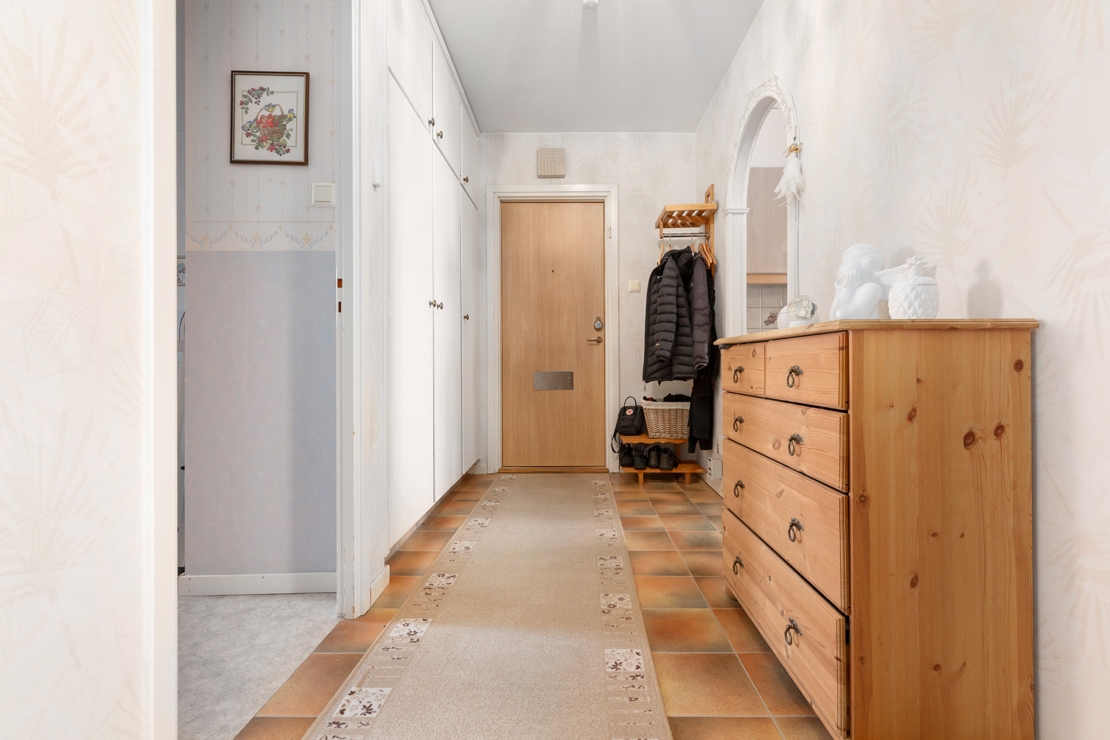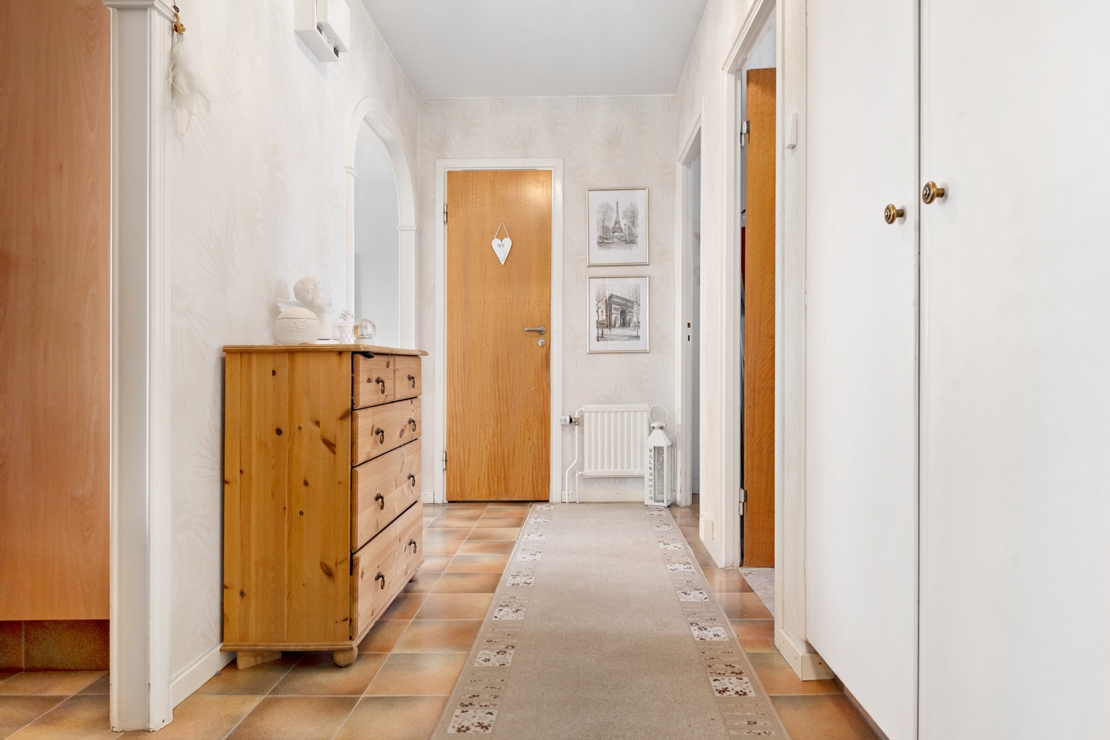 Välkommen till denna välunderhållna lägenhet, som erbjuder en rymlig hall med inbyggda garderober, ett trevligt och ljust kök, två sovrum som vetter mot den lugna innergården, ett stort och luftigt vardagsrum med utgång till en balkong med utsikt över Strandängen, samt ett badrum med toalett, handfat och en rymlig och bekväm dusch.