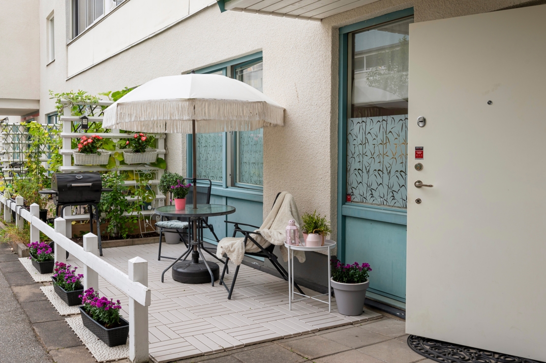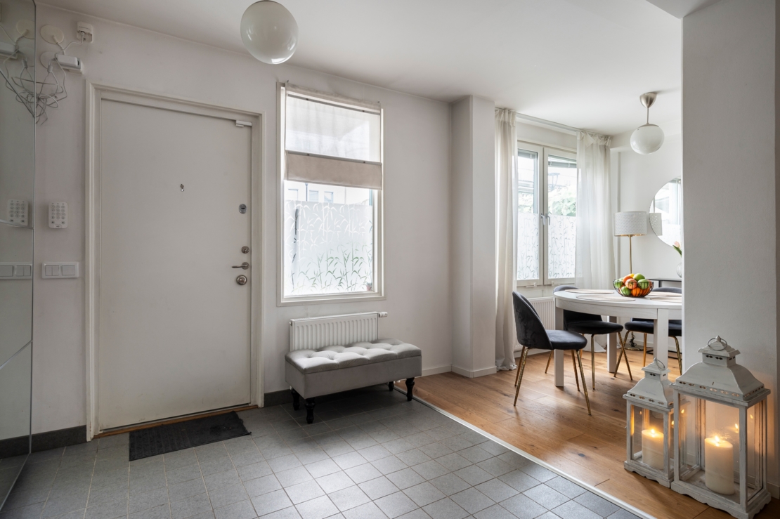 Välkommen till en unik lägenhet som erbjuder det bästa av två världar – lägenhetsbekvämlighet kombinerat med radhuskänsla och egen ingång. Bostaden byggdes om till lägenhet 2019 och håller därför mycket gott skick. Den stora, fina uteplatsen ger dig gott om utrymme för både avkoppling och sociala tillställningar, med direkt access från vardagsrummet. Lägenheten är välplanerad med fyra rymliga rum, perfekt för en familj eller för den som önskar extra utrymme. Här finns tre sovrum, ett ljust vardagsrum med utgång till uteplatsen i sydläge, och ett centralt placerat kök med en rymlig matplats vid fönstret. Badrummet är helkaklat och stilrent, med tvätt- och torkmaskin. Sovrummen har plats för dubbelsäng, samt förvaring.