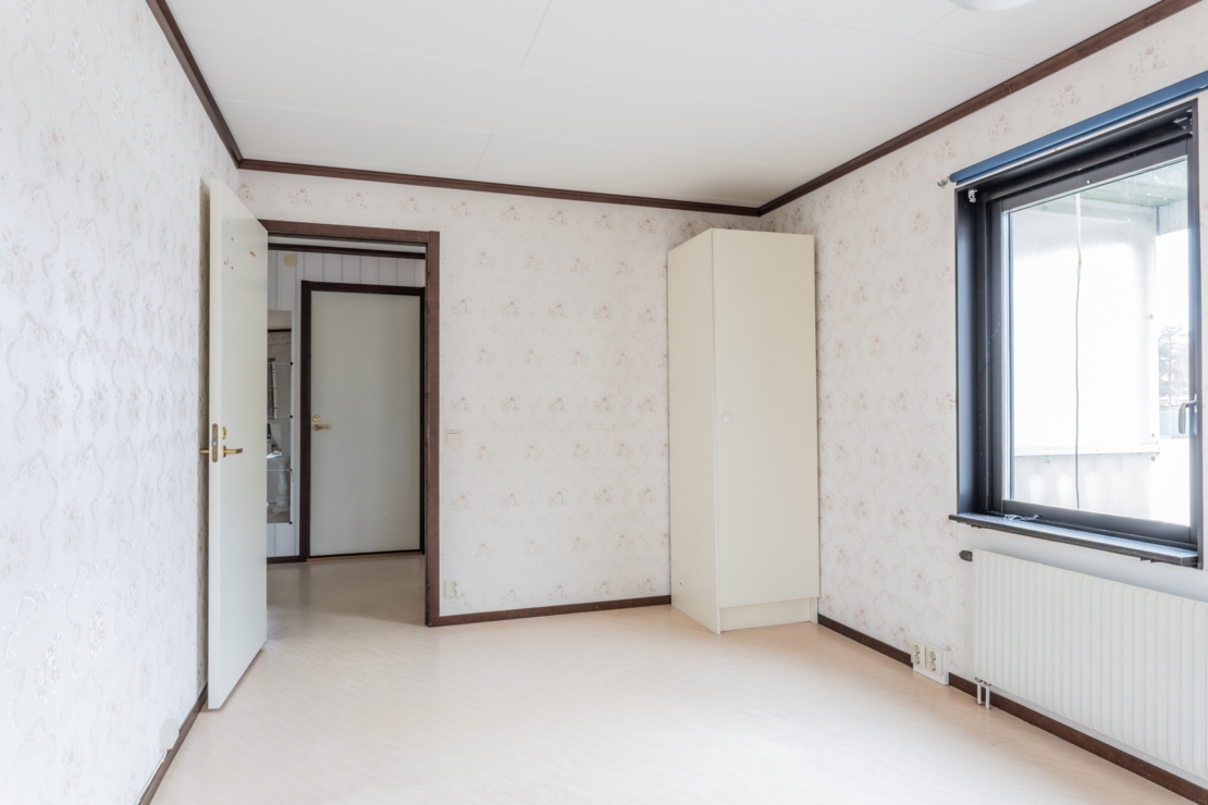 Bostaden erbjuder ett rymligt vardagsrum, ett stort sovrum samt ett välutrustat kök med ny kyl och frys samt diskmaskin. Här finns även ett stort förråd/garderob samt ett fräscht badrum med dusch, toalett och en ny tvättmaskin.