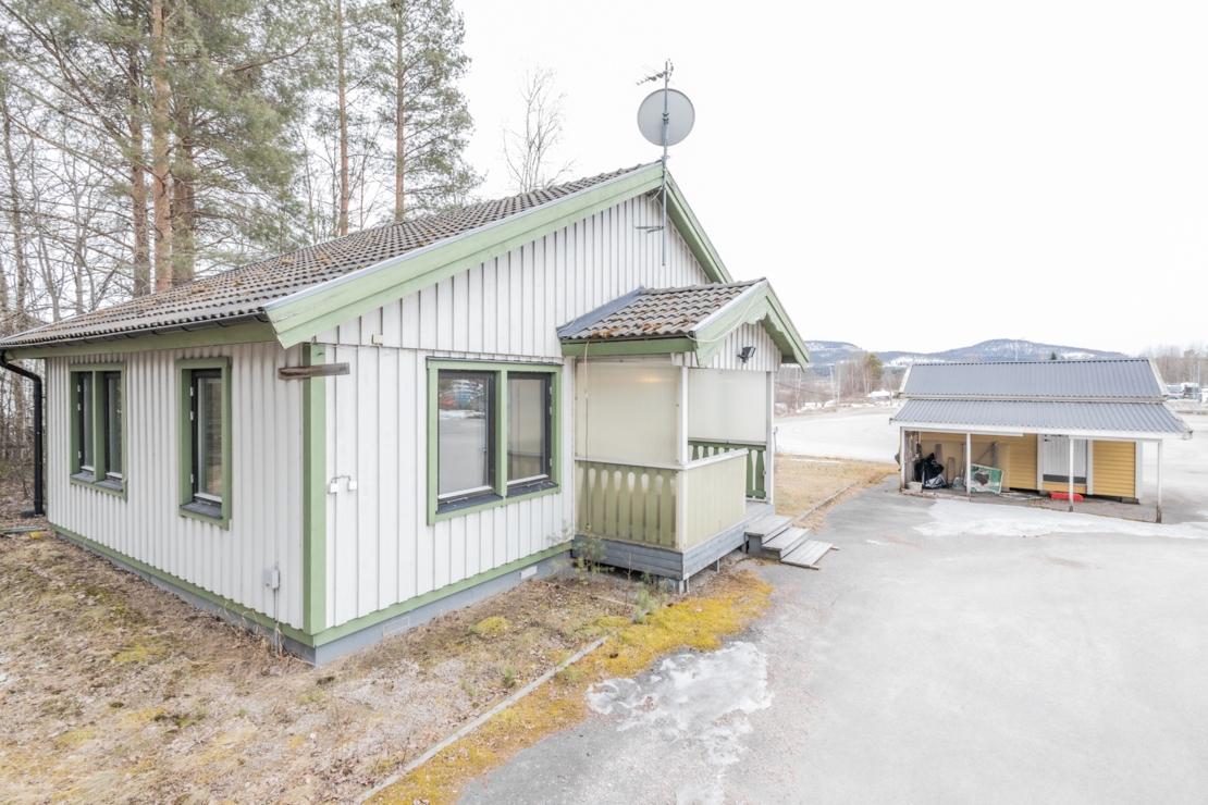På fastigheten finns ett fristående förråd med carport, och uppfarten är asfalterad med goda parkeringsmöjligheter.
