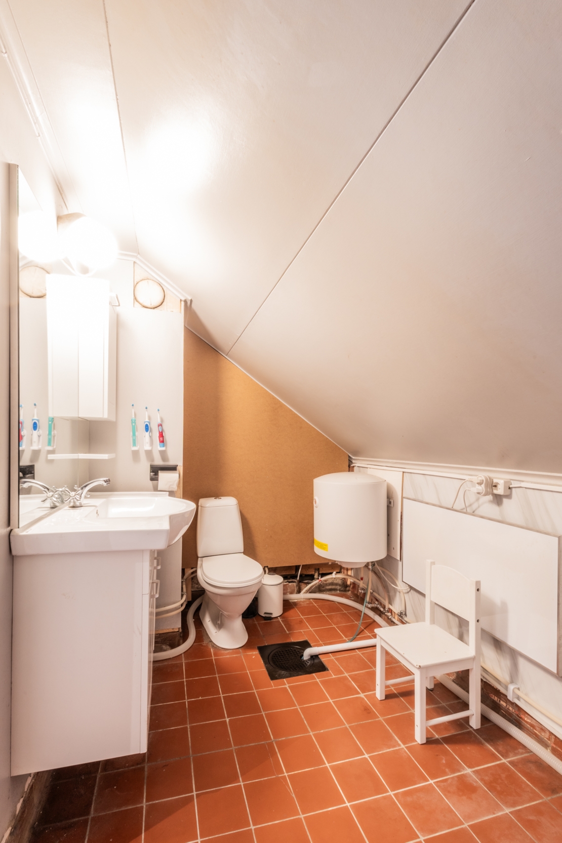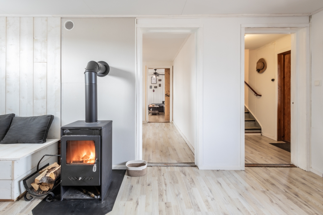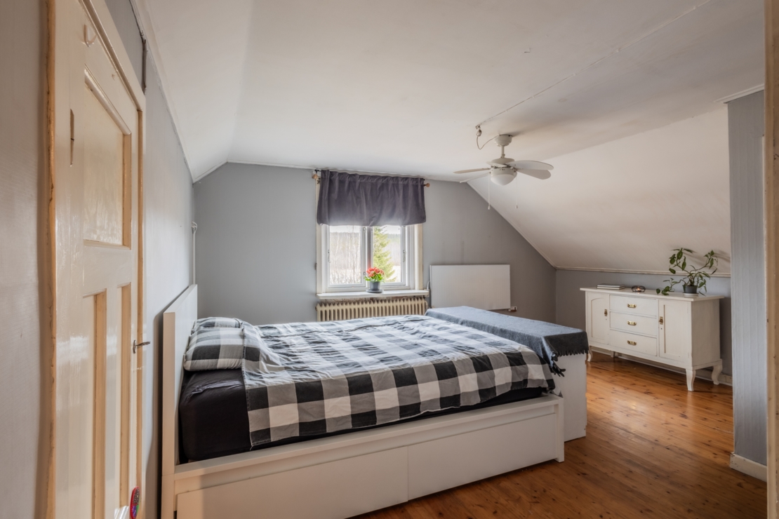 Entréplanet bjuder på ett fräscht och ljust kök, ett mindre rum samt ett rymligt vardagsrum med utgång till en stor altan – perfekt för sommarens middagar och avkoppling. På övre plan finns två sovrum med garderober placerade i kallvinden, samt ett badrum med dusch och toalett. Från det ena sovrummet har du en vacker sjöutsikt, och från det andra en rogivande vy över ängar och skog.