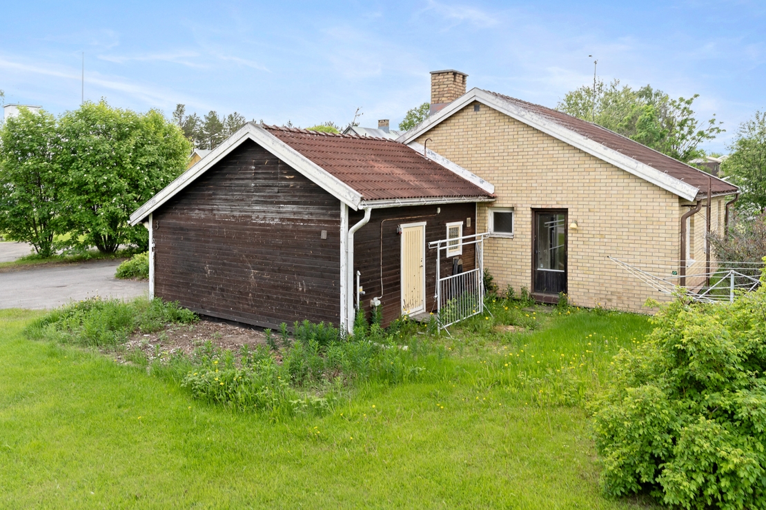 Det finns även ett vidbyggt varmgarage med förrådsdel, samt en fristående förrådsbyggnad om cirka 8 kvm.