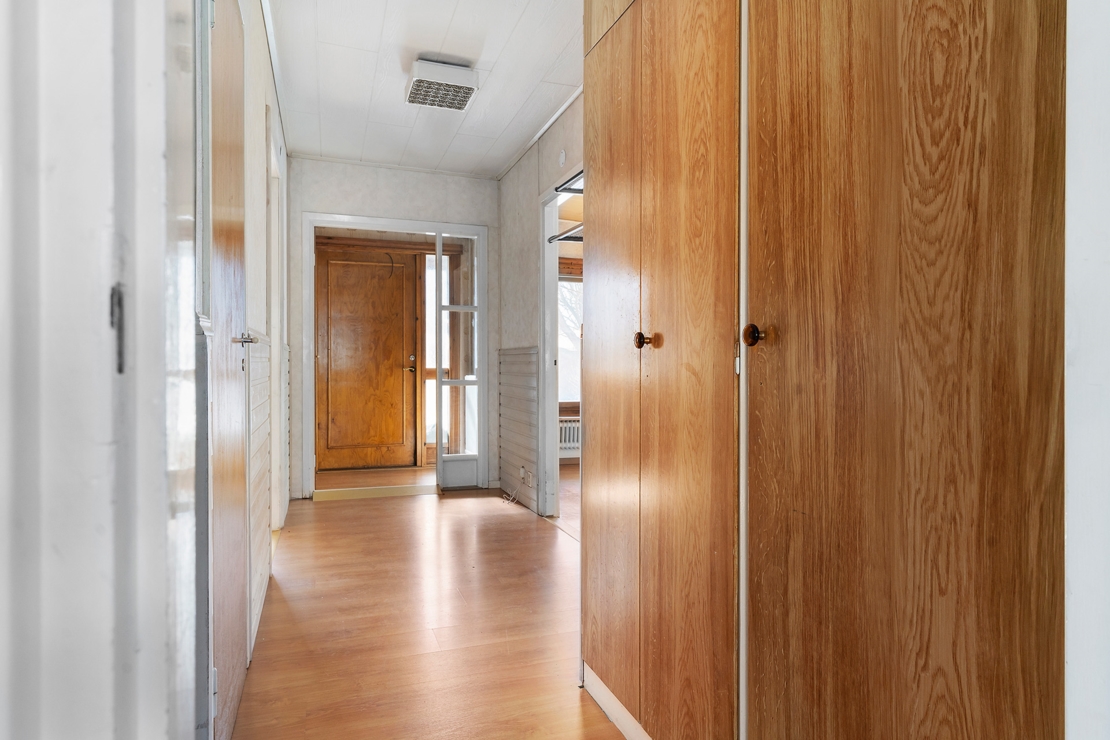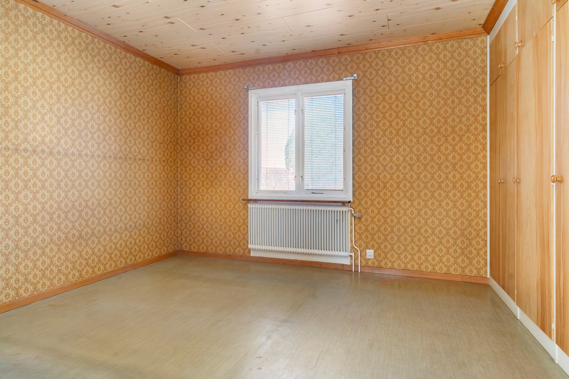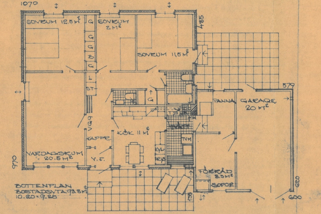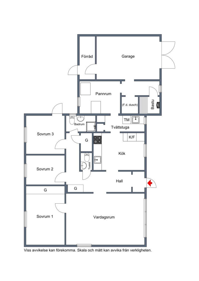 OBS: Husets grundplatta har en sättning på den västra sidan, vilket har medfört en märkbar lutning i vardagsrummet.