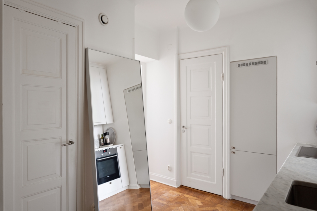 Bostaden är belägen på en lugn tvärgata med stadens puls precis runt hörnet – caféer, restauranger, butiker och kommunikationer finns inom några minuters promenad. Det här är en perfekt bostad för dig som vill bo centralt i en av Stockholms mest eftertraktade stadsdelar och värdesätter en hög levnadsstandard.