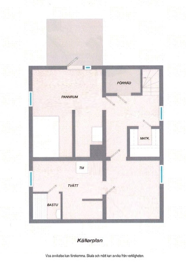 I källarvåningen finns en dusch, bastu, tvättstuga, pannrum, gott om förrådsutrymmen och ytterligare ett rum som med fördel kan nyttjas som hobbyrum eller utvidgas till relax-/spaavdelning i anslutning till bastun.