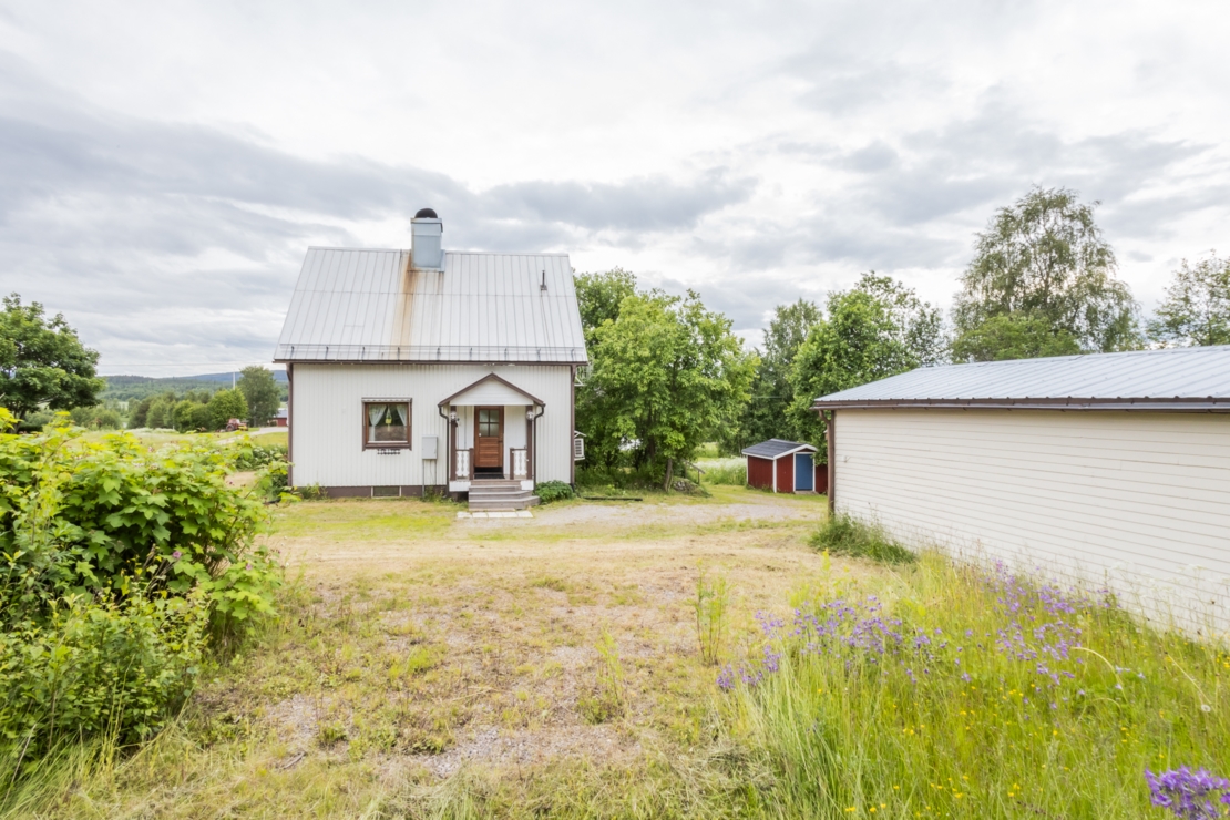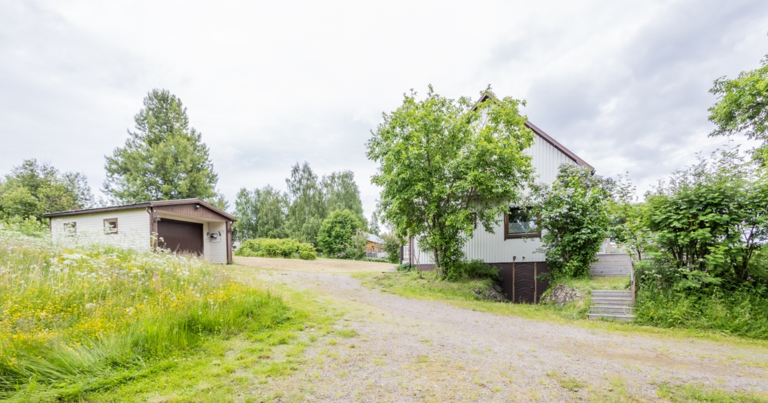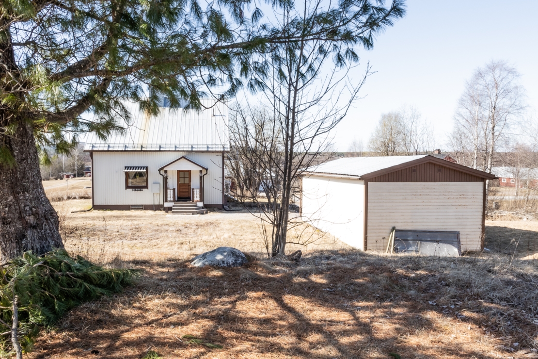 På den stora tomten finns ett fristående garage byggt på betongplatta, samt ett mindre förråd/skotergarage.