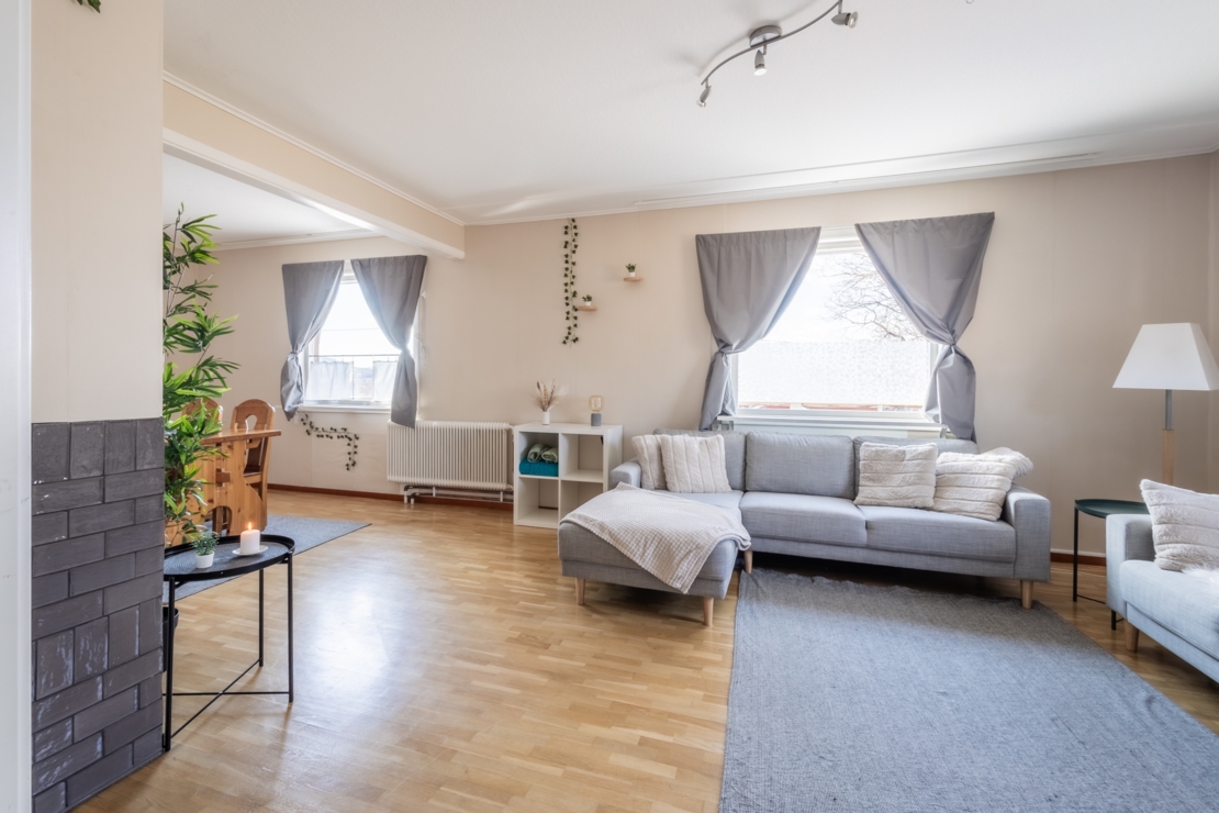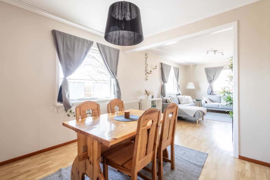 Här bor du i ett modernt och hemtrevligt hem som har genomgått ytskiktsrenoveringar under 2024, inklusive målning och tapetsering. Huset erbjuder en ljus och trivsam atmosfär, med en stor, solig altan där du kan njuta av den fina utsikten.
