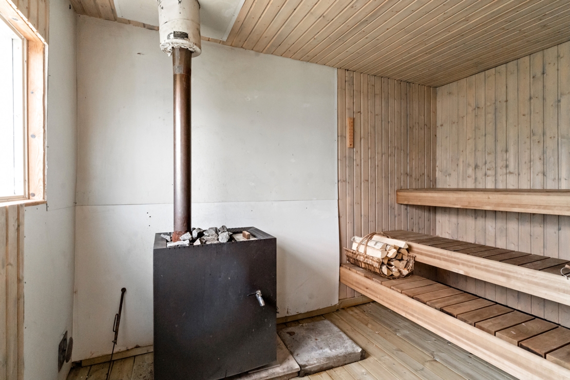 Till fastigheten hör även en fristående bastubyggnad på 20–25 kvm med nyare ugn och en relaxavdelning med nytt golv och tak.
