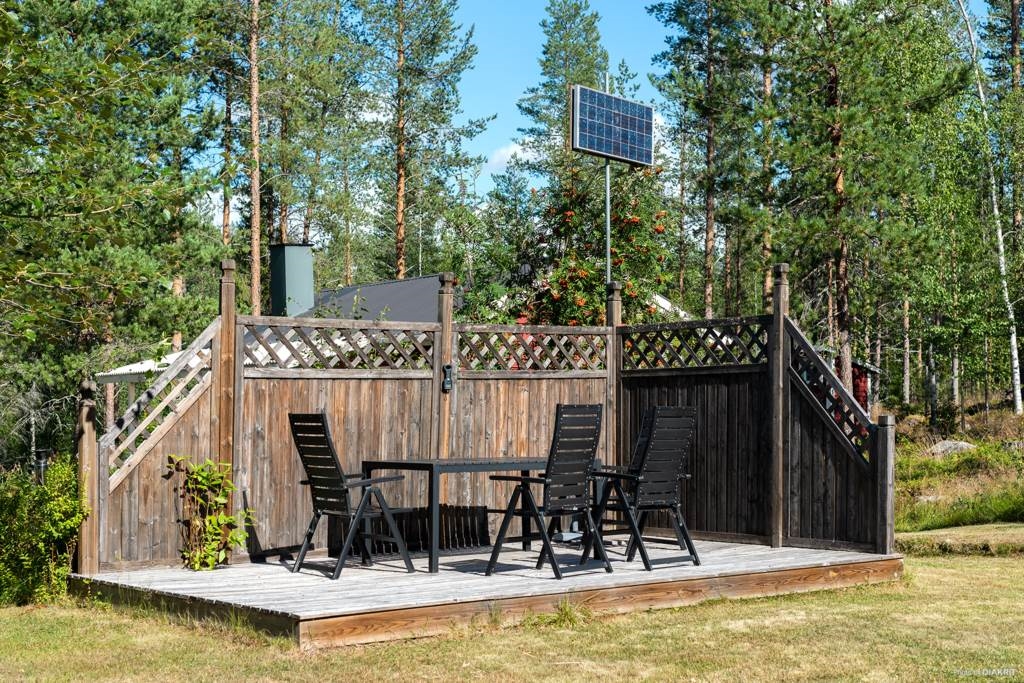 På tomten finns dessutom ett förråd, eldplats och utedass. Vattnet tas från egen brunn som även tidigare använts som dricksvatten.