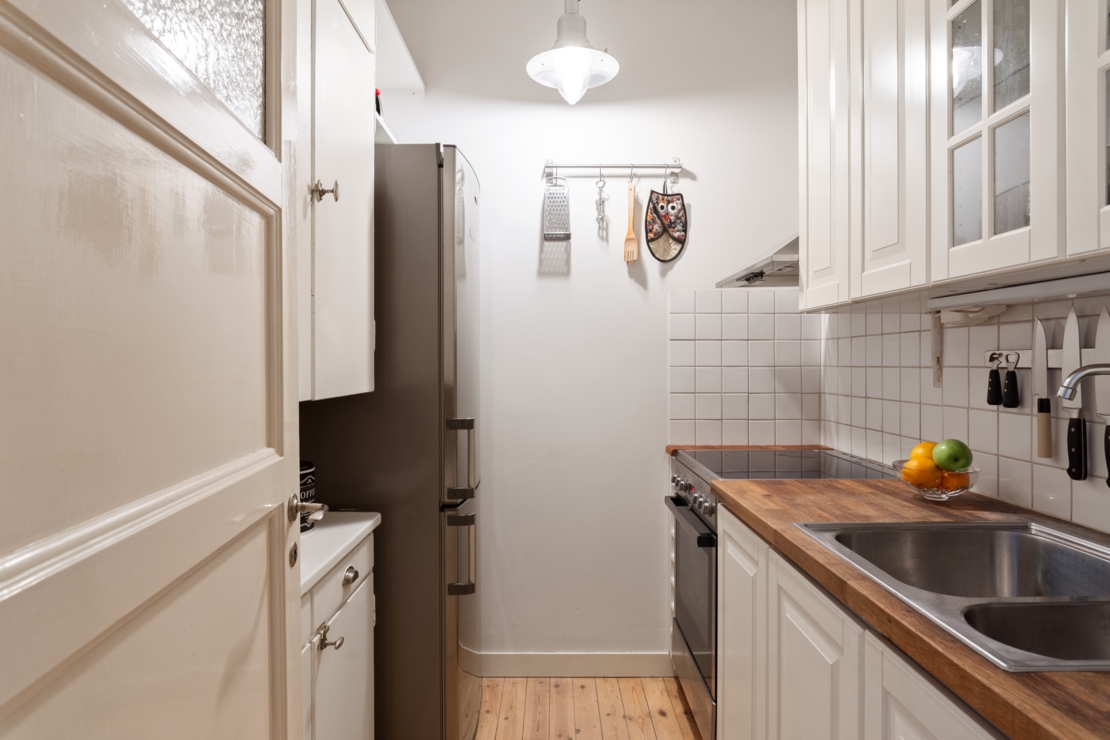 Det finns även cykelställ på gården, en cykelkällare samt barnvagnsrum i källargång.