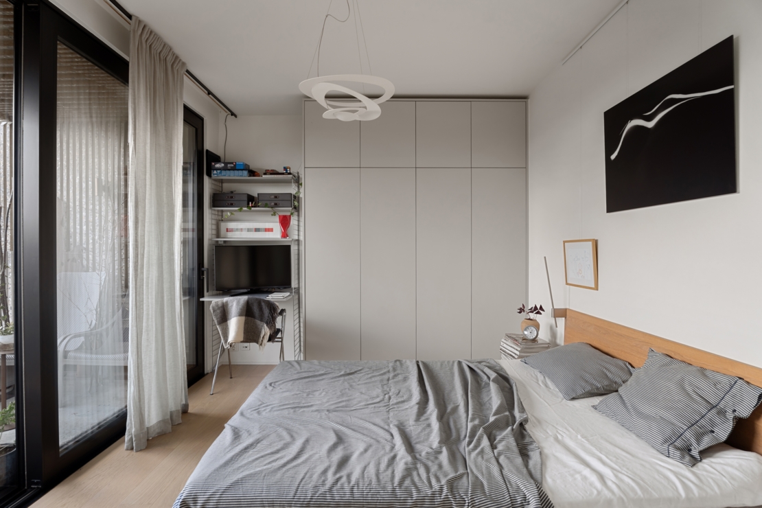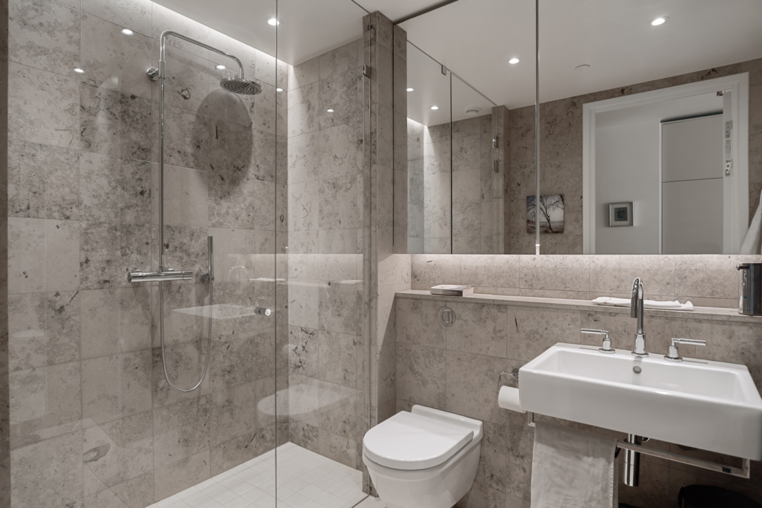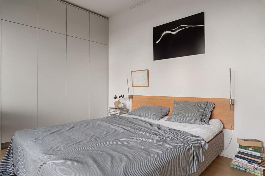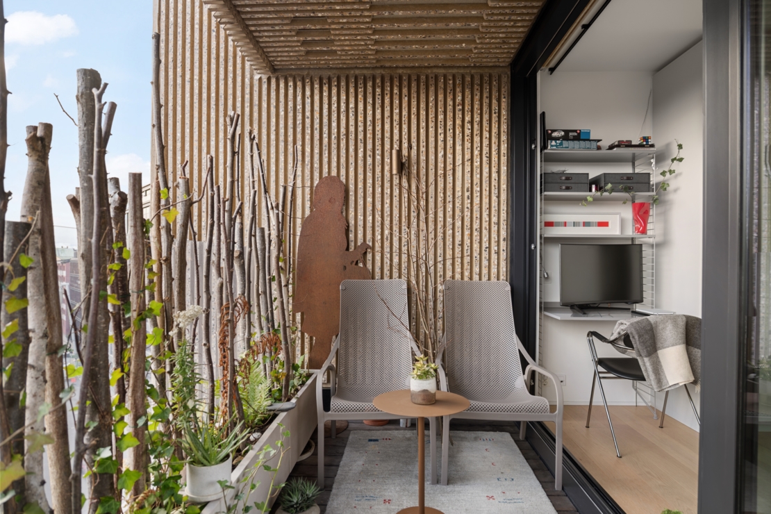 Sovrummet är rofyllt med plats för dubbelsäng och förvaring, och badrummet håller hög standard med golvvärme och tvättpelare dolt bakom stilrena dörrar. Från sovrummet nås balkongen där du kan koppla av ovanför stadens puls. Det är en perfekt plats för att starta dagen med en kopp kaffe eller ett yogapass i det friska, och lika härligt att avsluta kvällen här när himlen färgas rosa över Stockholm.
