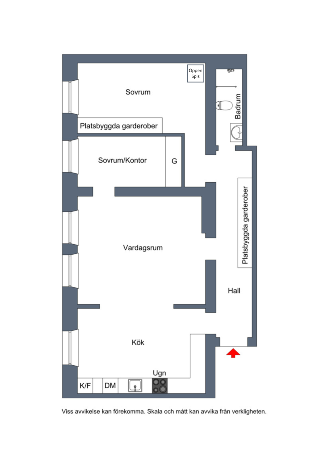 Badrummet är renoverat i ljusa moderna färger och utrustat med både takdusch och handdukstork. Förvaringen är genomtänkt och generös, med platsbyggda garderober i hallen som gör det enkelt att hålla ordning och skapa en luftig känsla genom hela hemmet.