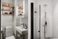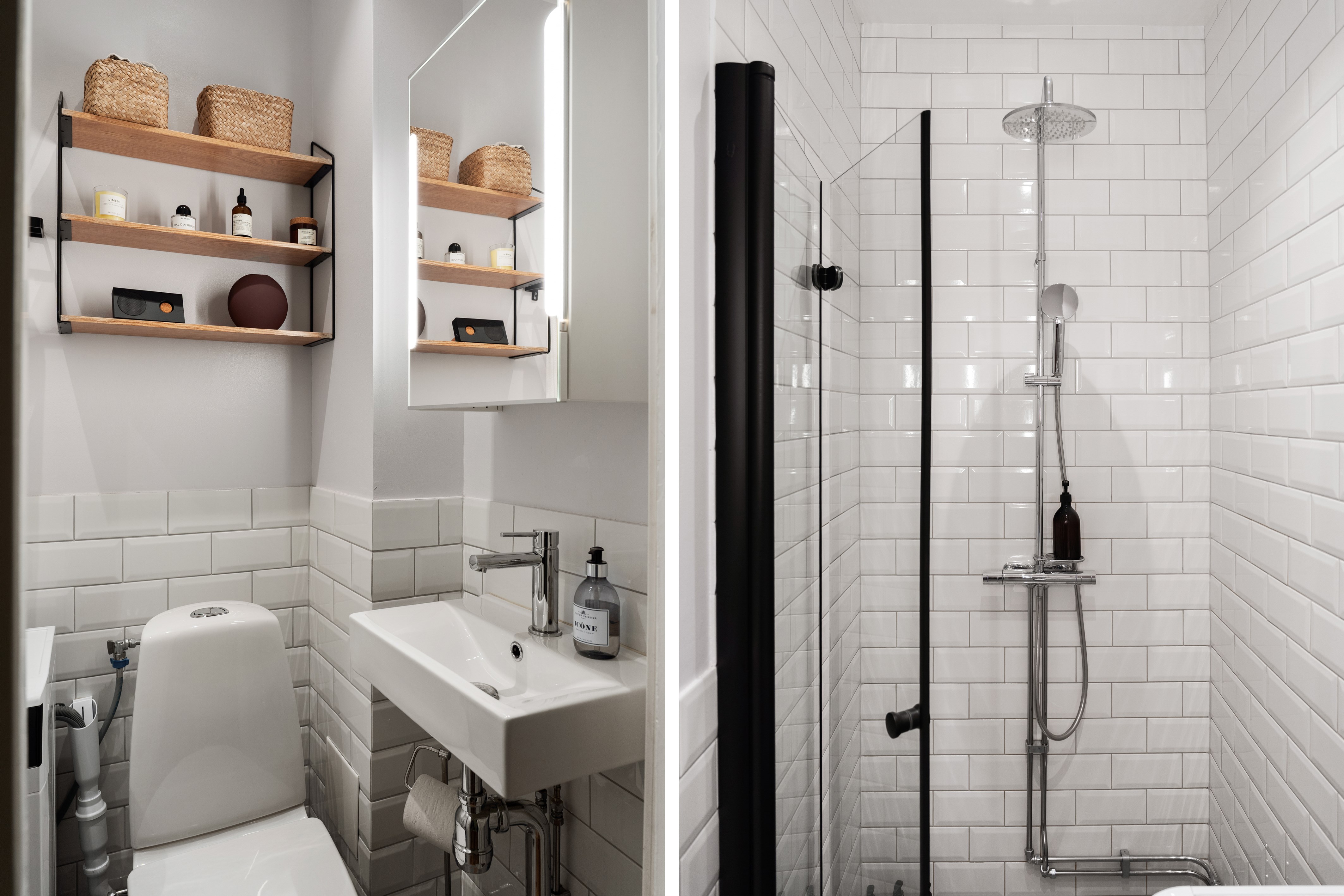 Badrummet är stilfullt renoverat och utrustat med tvättmaskin, vilket gör vardagen både bekväm och praktisk.