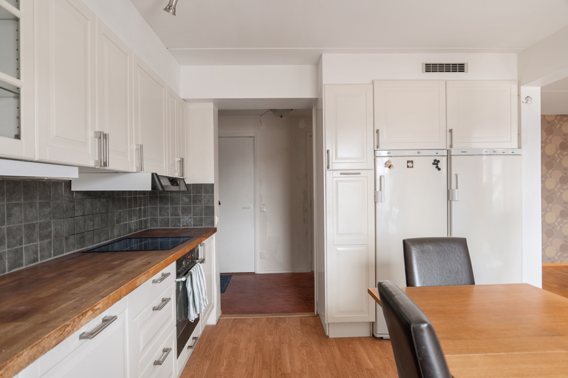 Här finns gott om utrymme för familjen med generösa sovrum, två badrum samt ett rymligt vardagsrum som bjuder in till umgänge. Lägenheten är i gott skick men ger även möjlighet för nästa ägare att sätta sin egen prägel, där exempelvis ytskikt som tapetsering kan uppdateras efter smak och stil.
